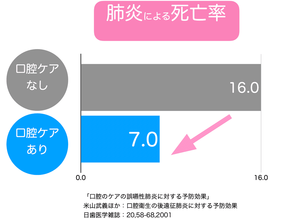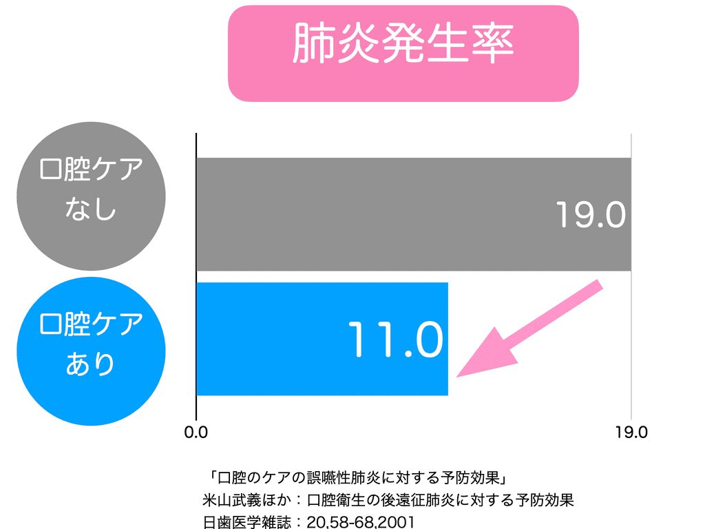 口の中が汚れていると、唾液と一緒に細菌が肺に入り、肺炎を起こす可能性があります。